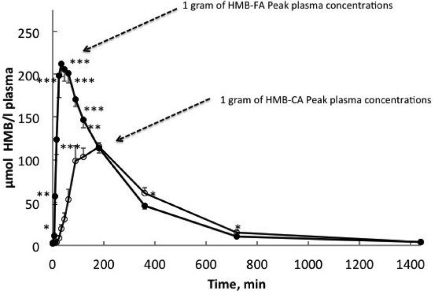 Si el objetivo es prevenir el daño muscular debe tomarse de 1 a 2gr de 30 a 60min antes del ejercicio cuando es HMB-FA y de 60 a 120min antes si es HMB-Ca. Aunque si se ingieren con altos niveles de glucosa se retrasa su efecto debido al vaciamiento gástrico.