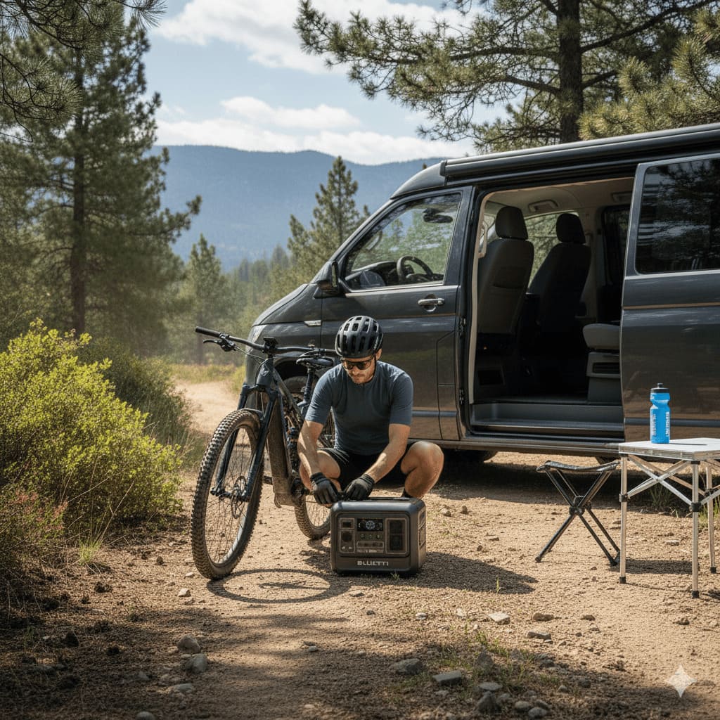 Lo mejorable: si vas con una e-MTB de 750 Wh y haces jornadas largas, una sola carga completa te deja con poco margen; ahí miraríamos la AC180/AC200L. Y si en tu furgo conectas muchos aparatos a 230 V al mismo tiempo, vigila el número de tomas o añade una regleta de calidad. Pero recuerda, que siempre puedes volver a recargar la Bluetti desde el conector del mechero del vehículo, o con paneles solares.